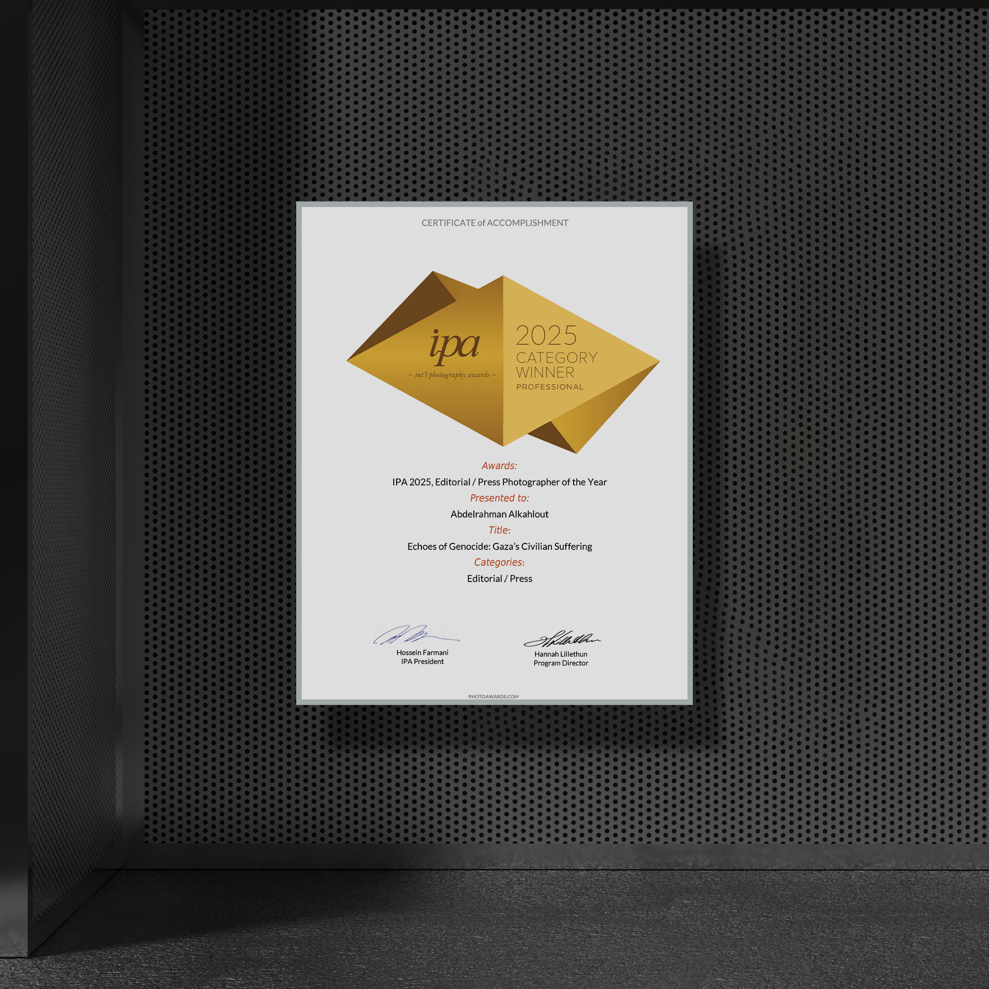 This certificate is available exclusively to past and present IPA Category Winner only.